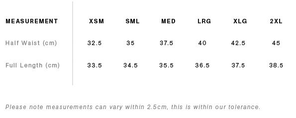 Construction - Elastic waist with external drawcord, 2 side pockets, 1 back pocket with zip, shorter length, split sides for ease of movement, elastic key loop in LHS pocket, fully packable into LHS pocket